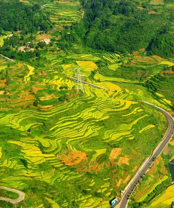 金秋时节,黄平县境内稻谷一片金黄,从空中俯瞰,青山绿水间梯田层层叠叠,美若画卷。